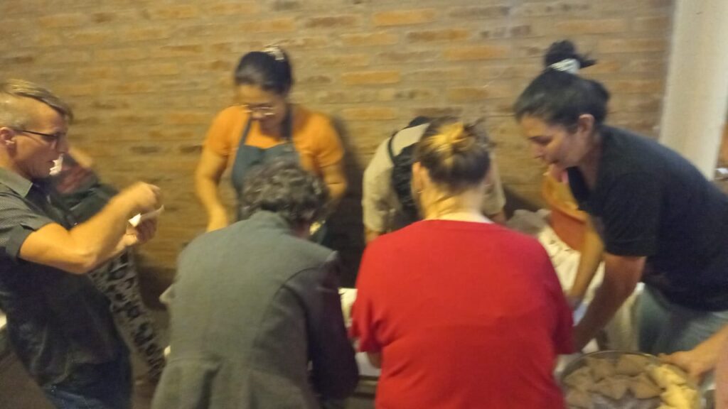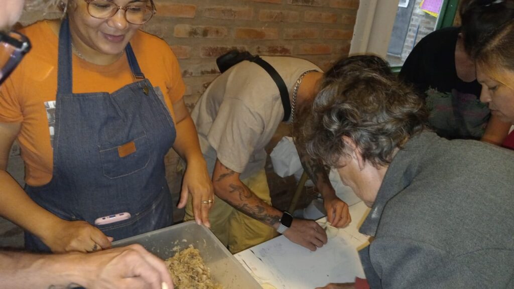 Este 7 de noviembre hicieron trabajos de Producción, sobre la actividad Jurado dijo » cocinan fueron trabajando teóricamente en la materia Educación Tecnológica, el proceso que lleva una comida. Planificado, los recursos que necesitan, que disponibilidad de productos tienen en la zona, pollo al disco, taco, fideos caseros, pirok. Esto es la etapa final, pero hacen análisis también de la cantidad que necesitan, hay un estudio previo. A las 21.30 se comparte lo elaborado. Fortalecer vínculos, que se sientan bien, la mayoría trabaja todo el día, tratamos que sea un lugar agradable, que los contenga. De plenitud y descanso, uno ve la escuela como obligación y carga, aprender de otra manera, que sea una instancia agradable. Todas las noches juegos a disposición para fortalecer vínculos y da buenos resultados».