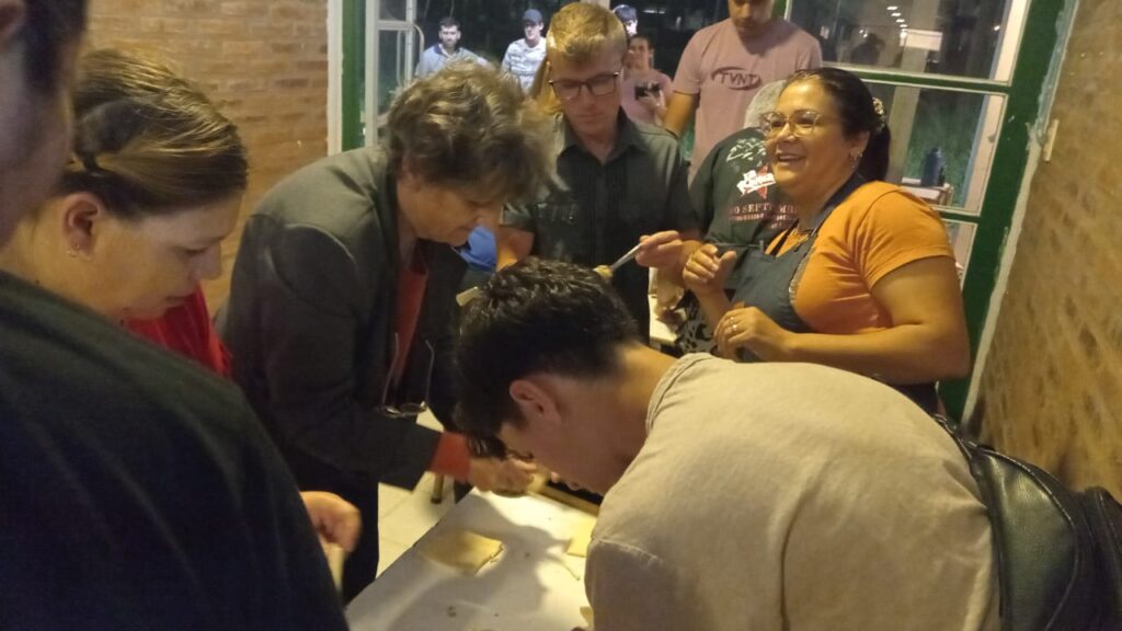 Los alumnos y equipo directivo, aprovecharon la visita de la Prof. Jacinta Eberle en su rol de vice presidenta municipal, para dar paso a la elaboración de pirok.
