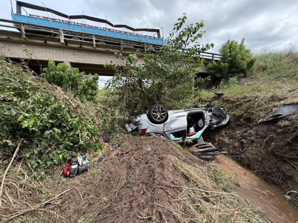 Por causas que se tratan de establecer, un vehículo despistó y cayó debajo de un puente, quedando volcado. A raíz del siniestro, se solicitó la intervención de personal bomberil para la extracción del cuerpo de una persona que se encontraba debajo de la estructura.