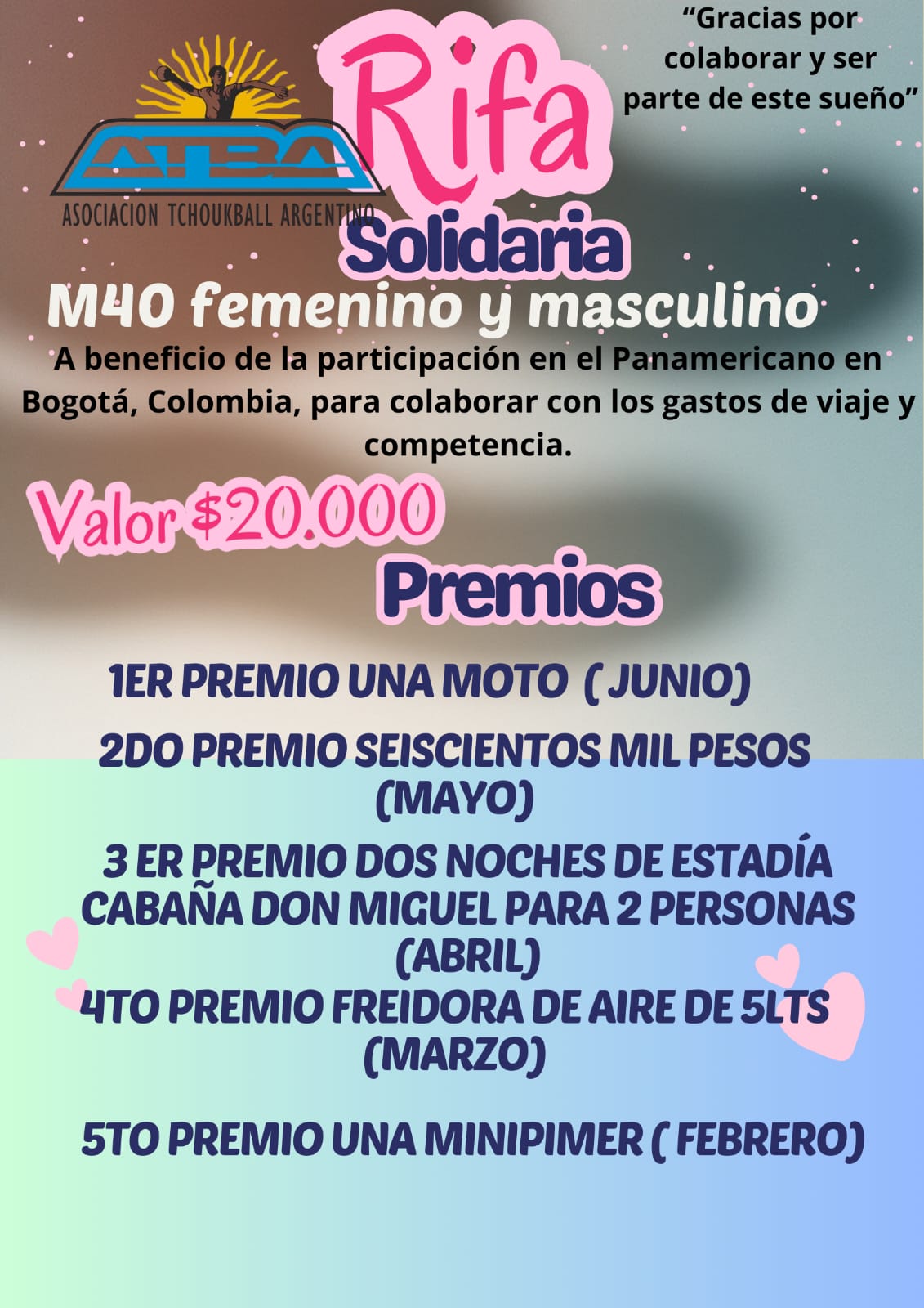 Para poder afrontar los gastos de viaje y participación, y dado que no cuenta con fondos oficiales, estamos realizando esta rifa solidaria con premios mensuales.