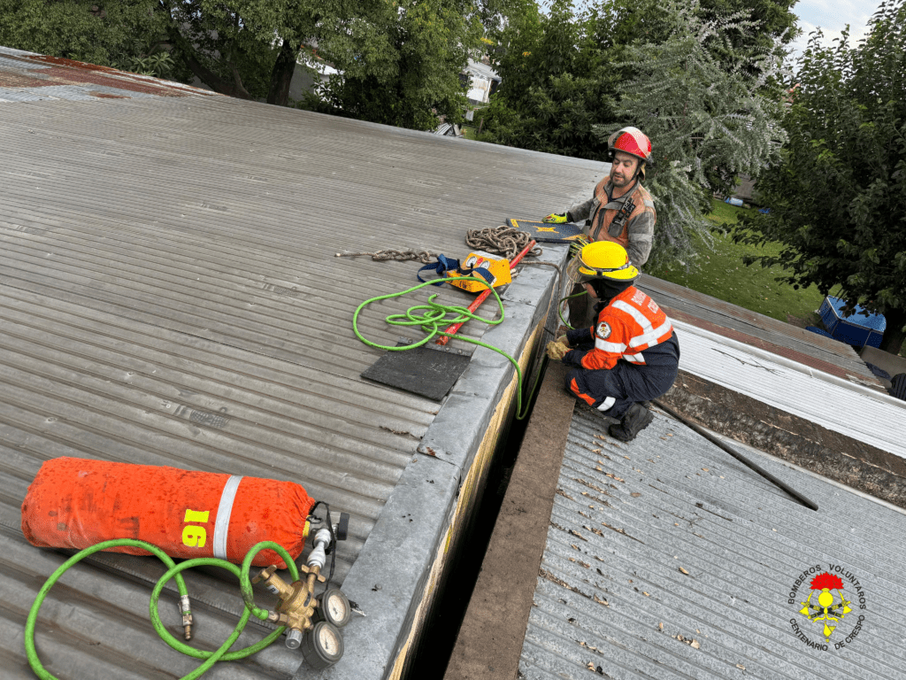 Trabajaron 4 bomberos con equipos de expansión para lograr su exitoso rescate.