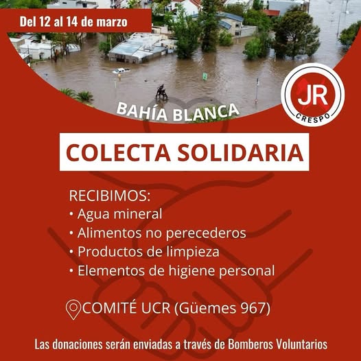 Lo recolectado será enviado a través de Bomberos Voluntarios