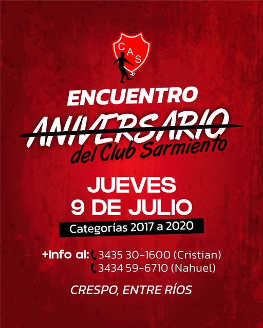 Bajo la organización de la Subcomisión de Fútbol Infantil, el próximo 9 de julio se desarrollará el Encuentro Aniversario del Club Atlético Sarmiento, actividad ya tradicional para festejar un nuevo año de vida institución de nuestro querido Decano.