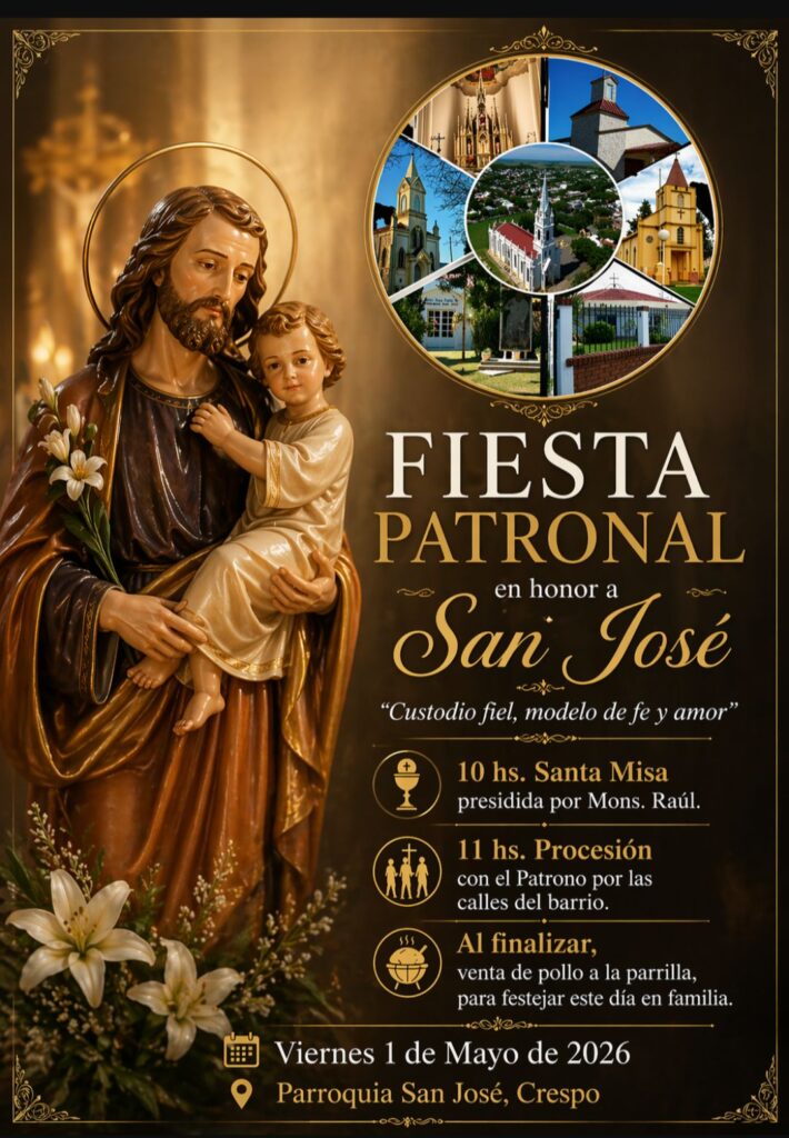 Invitamos a celebrar nuestra Fiesta Patronal en honor a San José, el Viernes 1 de Mayo, con el siguiente programa: