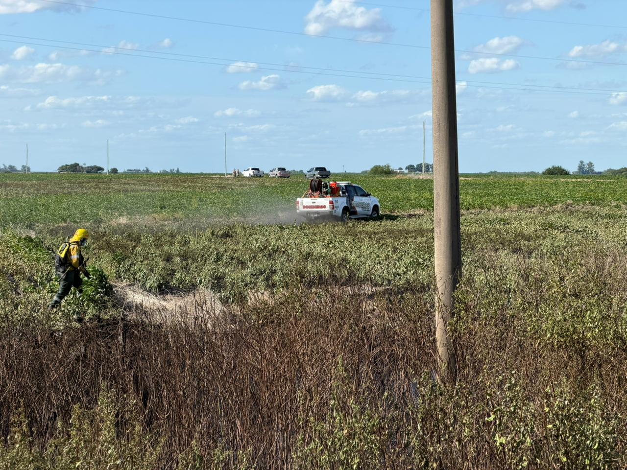 Al arribo de las dotaciones, se encontraban trabajando en el lugar dos dotaciones de Bomberos Voluntarios de Seguí, abocadas a tareas en el interior del campo.