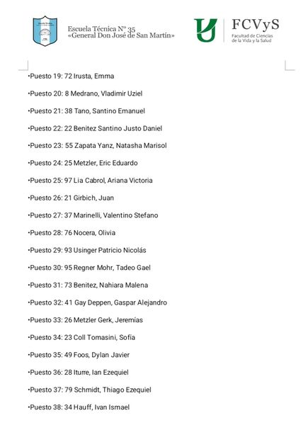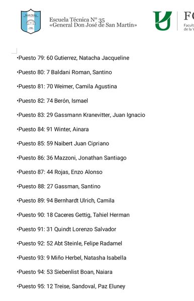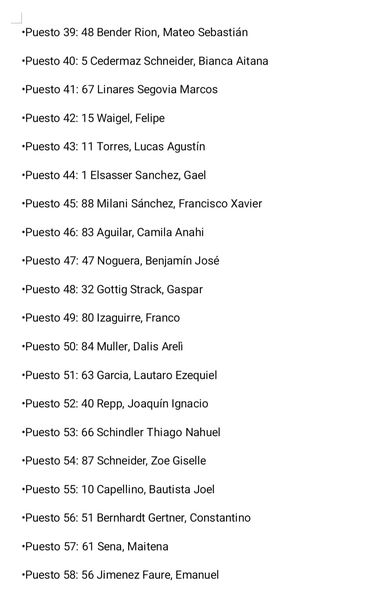 A continuación las listas;