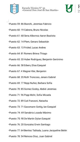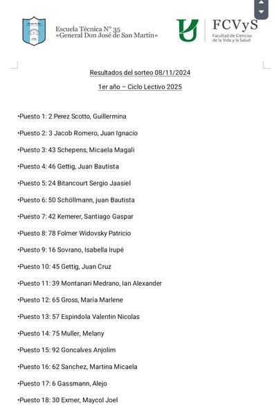 El 8 de noviembre, se realizó en las instalaciones del taller de la Escuela Técnica, después de las 10.00 el Rector Eduardo Osuna, el Regente Juan Jose Gottig, Vice Directora Fabiana Becker, Secretaria Adriana Baron, la Preceptora Melina Folmer, se concretó el sorteo de alumnos que entraran al próximo ciclo lectivo.