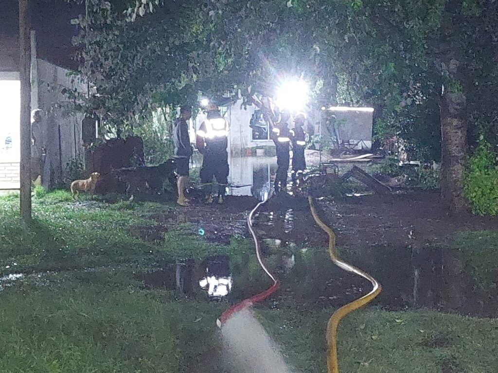 Se realizaron tareas en aproximadamente 18 domicilios en la ciudad de Crespo y 2 domicilios en la localidad de Racedo, donde se procedió al drenaje de agua y asistencia a los moradores afectados.