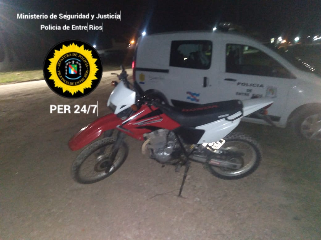 Personal policial se constituyo en la ruta 131 y Arturo Illia y al recorrer la zona debajo de un Frondoso árbol y tapada con ramas y tablas se localiza una moto marca Honda modelo Tornado de color blanca y roja dominio colocado 660KGI, siendo está la que fuera sustraída a su propietario, por lo que se procede al formal secuestro de la misma para su posterior entrega a su titular
