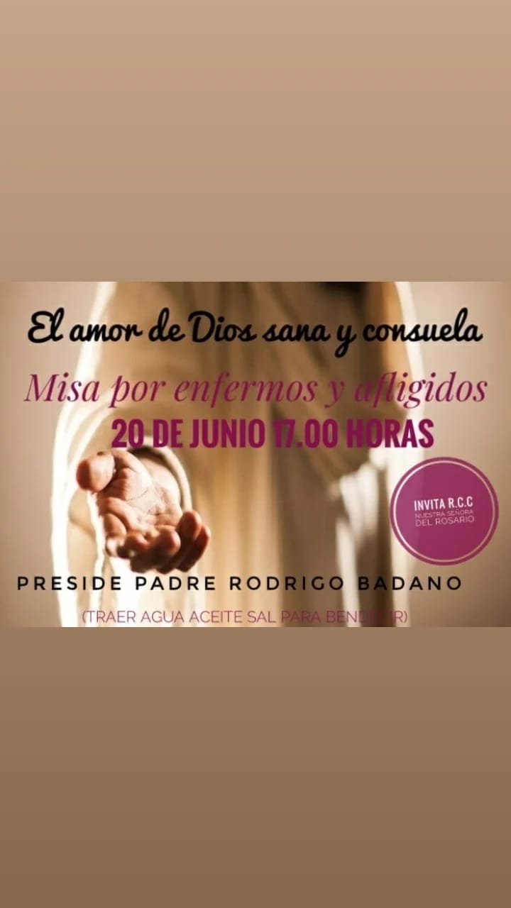 Se invita a participar de la misa Sanadora a las 17.00 de este lunes 20 de junio.
