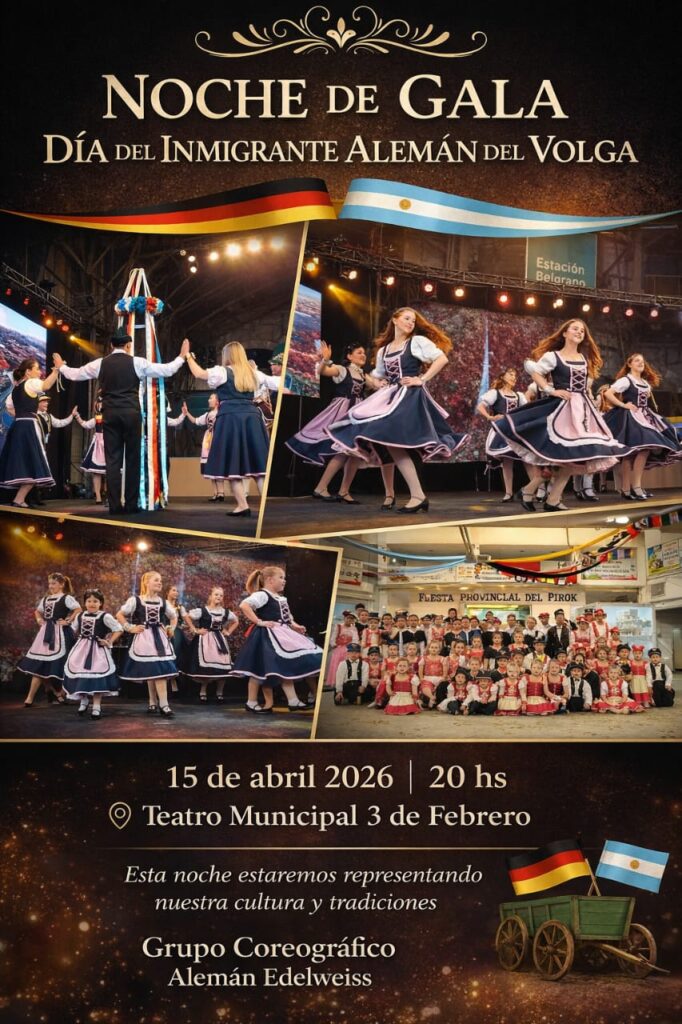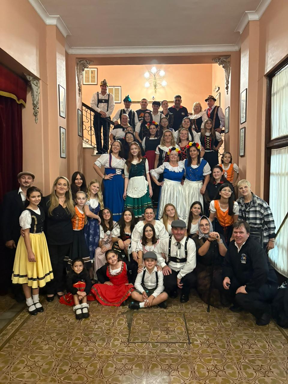 El Grupo Coreográfico Alemán Edelweiss nos llevó en un viaje en el tiempo a través de la danza y la música. Grandes y chicos dieron vida a los momentos más significativos de aquella epopeya: la emotiva bajada del barco, con la esperanza y el temor en los rostros de quienes pisaban esta nueva tierra; el tradicional casamiento, símbolo de comunidad y de futuro; y las escenas del trabajo cotidiano, con los hombres repartiendo alimento a las gallinas, mostrando cómo con esfuerzo y manos laboriosas levantaron sus hogares.