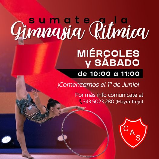 Desde el 1º de Junio vas a poder disfrutar de Gimnasia Rítmica en la institución. Para conocer más información, comunicate al 3435023280 ![]()