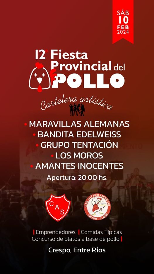 Se confirmó la cartelera musical de la fiesta Provincial del Pollo